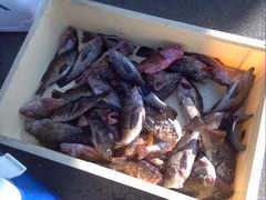 こうして夜も明け、マダイ狙いでテンヤなんぞをやってみますが、食ってくるのは根魚のみ。