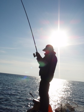 彼はといえば、ゆ〜っくりと海を眺め、あまり釣りするって雰囲気じゃない。