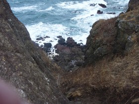 表側(南側)は短い野草が生い茂る「山」って感じなのだが、裏は「これぞ崖!」と言わんばかりの豪快な崖。